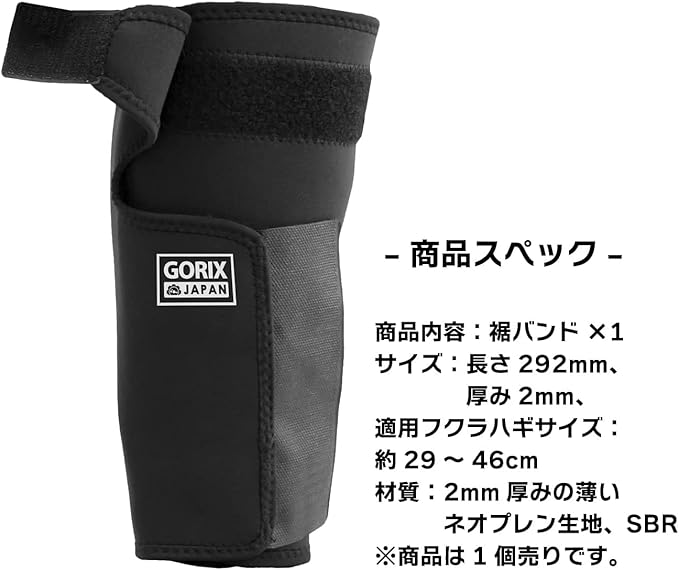 【商品内容】:GX-SUSOLOCK裾バンド 1【サイズ】:長さ292mm、厚み2mm、適用フクラハギサイズ約29~46cm【材質】:2mm厚みの薄いネオプレン生地、SBR