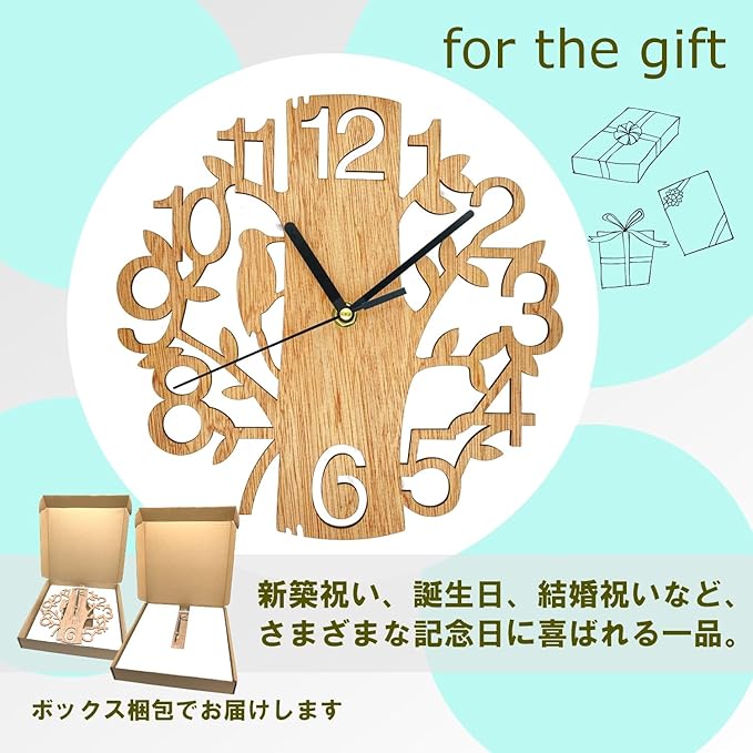 [自然の温かみを感じる北欧デザイン] 木目調の仕上げに鳥と木をモチーフにした切り絵風デザインが特徴で、ナチュラルな雰囲気を演出します。どんなインテリアにも馴染むデザインで、リビングや寝室、キッチンなどあらゆる空間のアクセントに最適です。天然木材を使用した高級感のある仕上がりも魅力です。