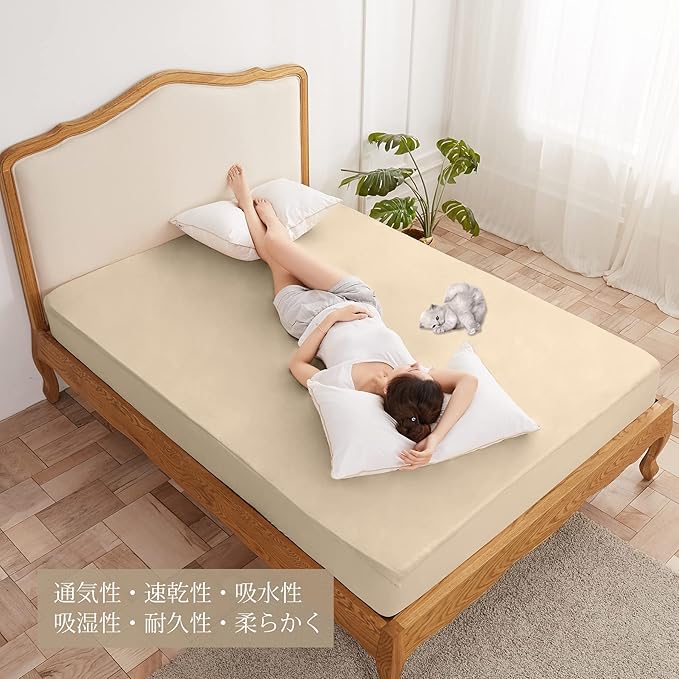 防水性能: ボックスシーツの表面は ポリエステル100%で、水分をマットレスへもれずに、吸水率が高くて通気性が良くて柔らかくて快適です。不快感を軽減し快適にお過ごしいただけます。ペット対策、老人の失禁対策、衛生対策シーツとして活用されています。こまめに洗い替えしていただくことで清潔・衛生的に保ちます。