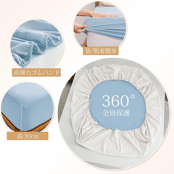 【ベッド笠のデザイン】マットレスカバーは、滑り止めのゴムが付いたボックスタイプなので、マットレスをしっかり包み込み、着脱も簡単です。ずれないので、寝相が悪くても使えます。