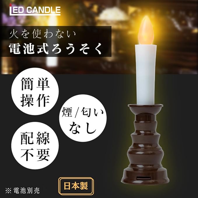 福正堂 仏壇用ledろうそく 電気ロウソク led 蝋燭 【日本製】 仏壇用 電池式ろうそく 電気ろうそく 電気 ろうそく 仏壇用ledろうそく 仏具 小