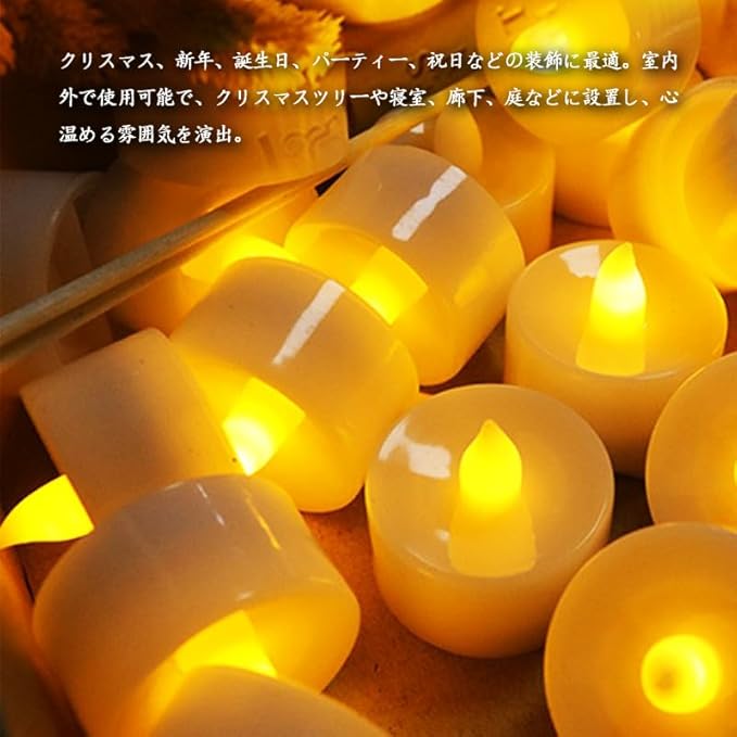 【雰囲気を作る】おしゃれで人気の雰囲気作りグッズ!蝋燭のようなライトは、癒しの効果があり、特別な祝日に使えば思いがけない雰囲気を演出!眠れない夜にも睡眠サポート効果が期待できます。火を使わずに電池で点灯するので、安全性も抜群。12時間点灯し、可能な電池搭載!
