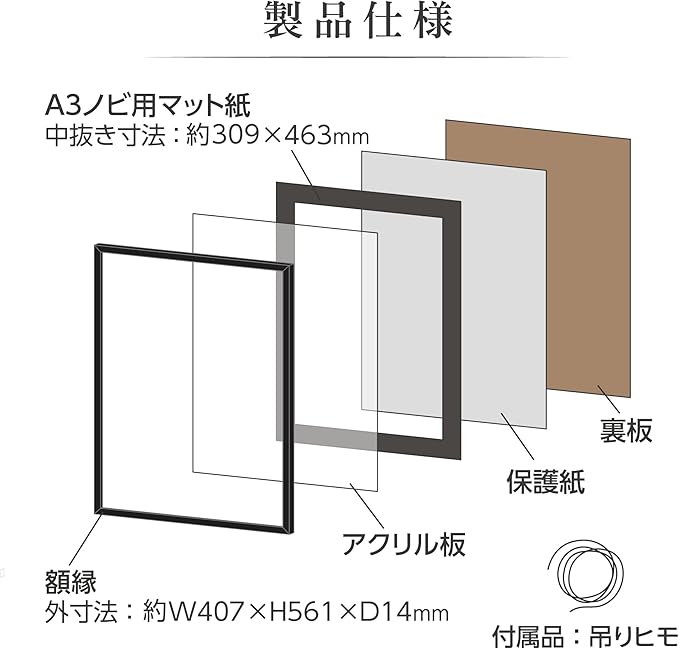 マット紙抜き寸法 : W309 H463mm