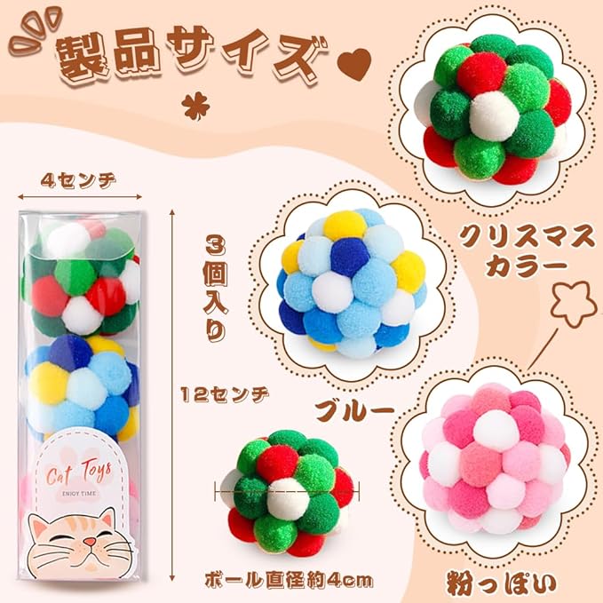セット内容:グリーン+ブルー+ピンクのキャットボール。 キャットボールのサイズ:4CM。