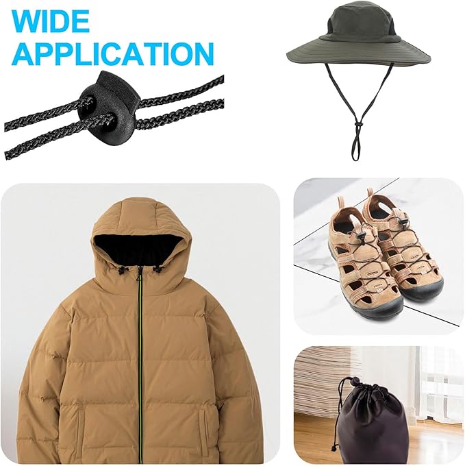 多目的:ダブルホールコードロックはさまざまな種類の紐やコードに使用できます。ゆるんだ結び目や絡まったロープに別れを言いましょう。これらの小さなロックは、靴ひもを固定したり、バックパックの紐やスポーツ用具を固定したり、さらには紐付きのバッグやパンツにも適しています。