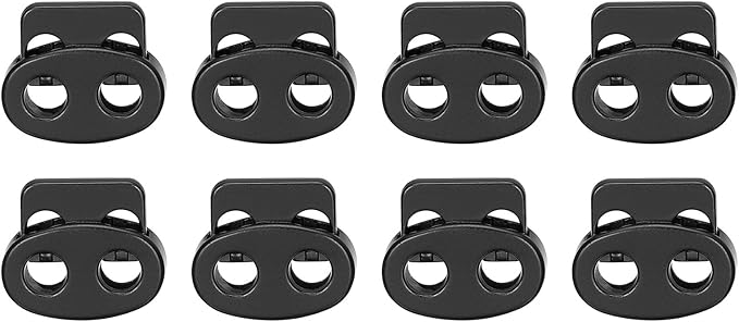 [uxcell] スプリングコードロックエンドトグル 8個セット ダブルホールスプリングストッパーアロイファスナースライダートグルクリップ ドローストリング 靴ひも バッグ用 黒
