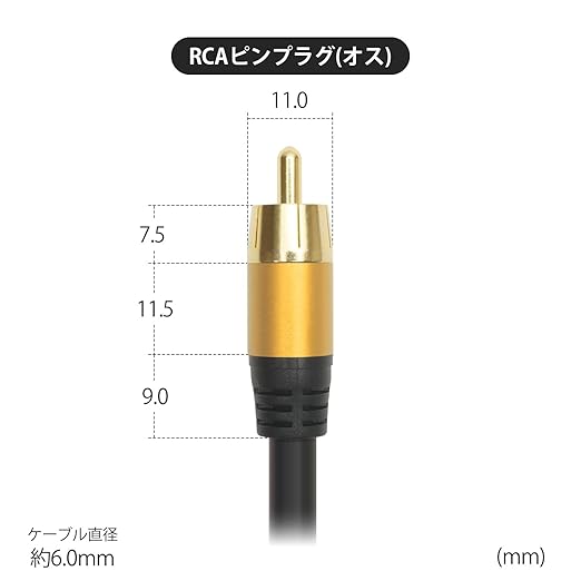 ●コネクタ形状:RCAピンプラグ(オス) - RCAピンプラグ(オス) ●コネクタサイズ:W約11.0 x H約11.0 x D約36.0 mm