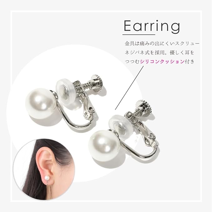 【素材・カラー・セット内容】 ・ ネックレス金具:真鍮ロジウムメッキ、パール:天然貝パールを使用 ※天然の貝殻を成形し、パールエッセンスを幾重にも重ねた高品質な人工パールです。上品な輝きと豊かなツヤ、8mmの存在感あるサイズは本真珠に劣らない真珠です。貝パールは汗や変色にも強く、フォーマルから日常使いまで幅広く活躍します。 ・ネックレス:日本製糸(ポリエステル)使用 ・カラー:ナチュラルホワイト、グレー、ブラックグリーン ・イヤリング金具:真鍮ロジウムメッキ+シリコンパッド付き