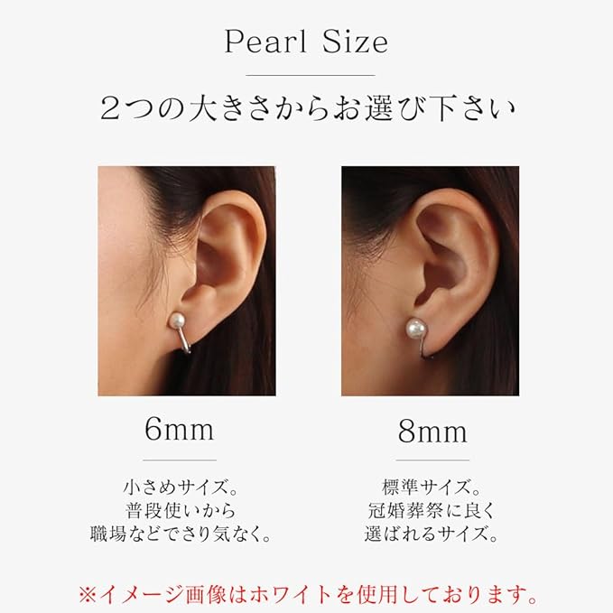サイズ(約)/イヤリング:縦1.7 横0.8cm、真珠サイズ:0.8cm 素材/宝石:グランプレミアムパール(クリスタルパール)、留め具/真鍮(代用ロジウムメッキ)、シリコン