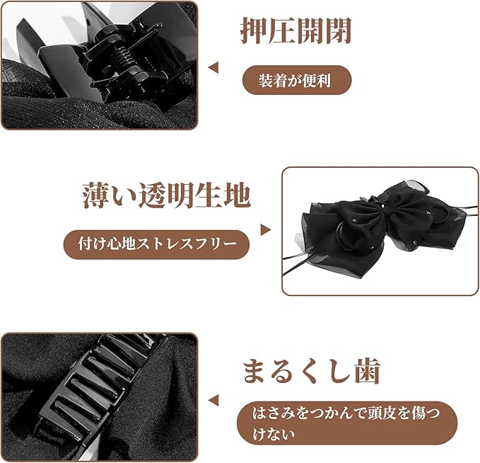 【ファッションの美学】大きなリボン装飾を採用し、白黒リボンの髪飾りの色オプションはファッション的な外観を提供し、私たちのリボン爪クリップはどんなヘアスタイルにも優雅さと魅力を加えています。