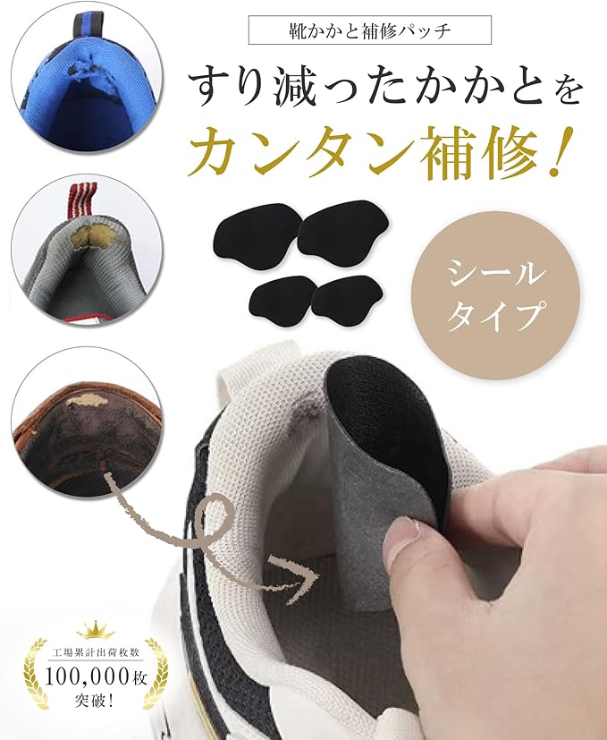 【簡単な取り付け】シールタイプのデザインで、貼るだけの簡単操作。靴の内側をきれいに拭いてから貼り付けるだけで、補修が完了します。
