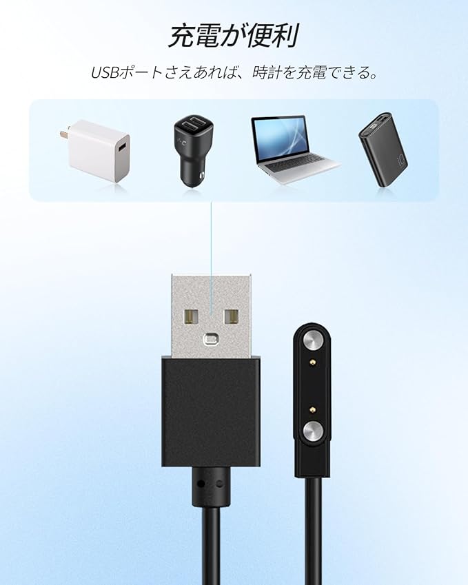 【持ち運び便利】この充電ケーブルは、持ち運びに便利で、特に旅行には最適です,腕時計のバックアップ充電器として最適です。バックパックに入れれば、どこにいても時計を確実に充電できます。