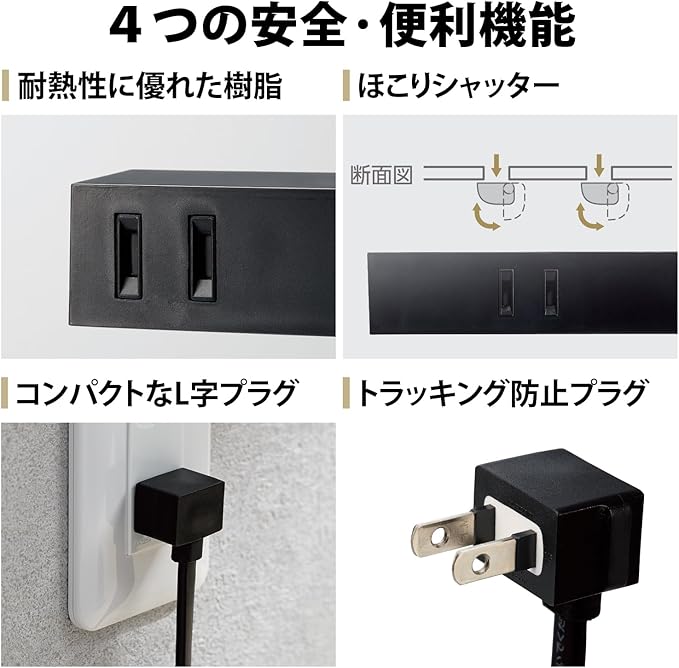 AC差込口には、万一の発熱の際にも融解しにくく、電気火災の防止に有効な耐熱性に優れたユリア樹脂を使用しています。