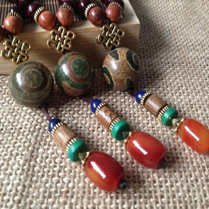 三眼天珠は仏の第3の目を象徴とする。 過去・現在・未来を見とおす眼であり、世界から「苦」を除こうと欲する慈悲の眼でもある。 癒しの力が強く、失敗からの回復力を与えるとされます。幸せとお金と長寿を叶えるといわれている天珠です。