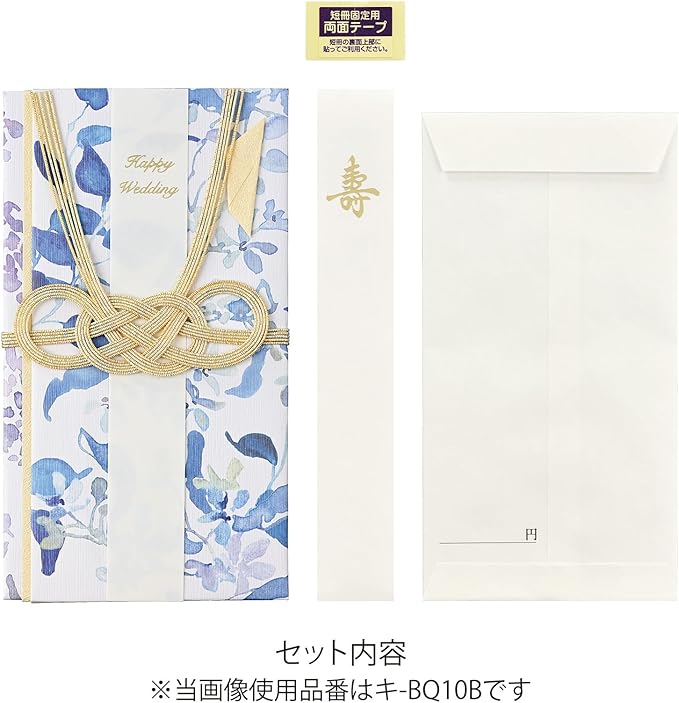 美しい水彩のタッチでブルースターの花束を描いた華やかな金封です。ブルースターの花言葉は"幸福な愛"。