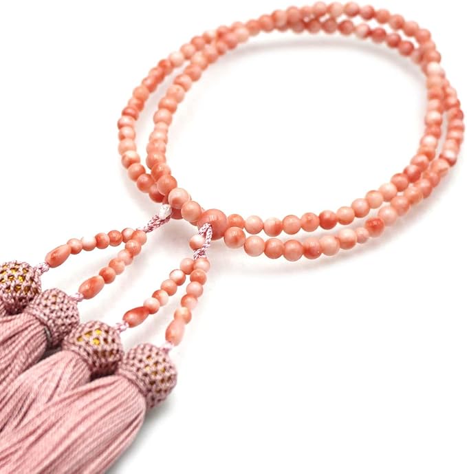 深海珊瑚本連数珠 女性用 5.5mm玉 長さ58センチ 数珠袋付 桐箱入(のし等ギフト対応) 無染色さんご サンゴ念珠は結納、嫁入り道具に
