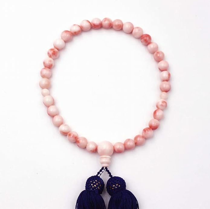【店長のおすすめポイント】ピンクサンゴの数珠です。珊瑚の数珠は親から子へ譲ることができる唯一の念珠といわれており別名ゆずり念珠と呼ばれます。そのため結納や嫁入り道具として選ばれることも多くございます。