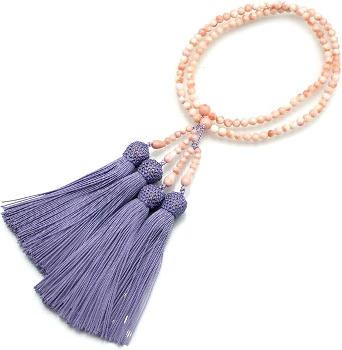 【サイズおよび素材】●素材 深海珊瑚 直径約5.4ミリ 親珠(約7.5ミリ)、四天珠(約4.5ミリ) ●サイズ 長さ約57センチ ●金具:房 正絹