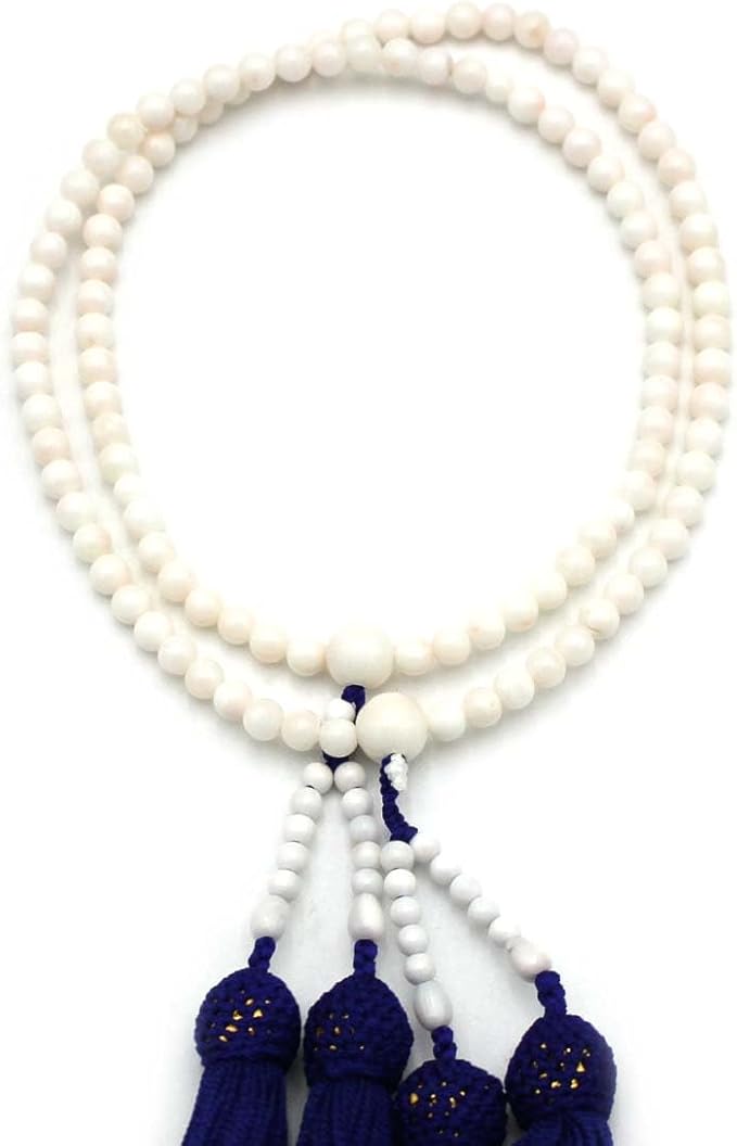 白珊瑚本連数珠 女性用 5.4mm玉 長さ58センチ 数珠袋付 桐箱入(のし等ギフト対応) 無染色さんご サンゴ念珠は結納、嫁入り道具に