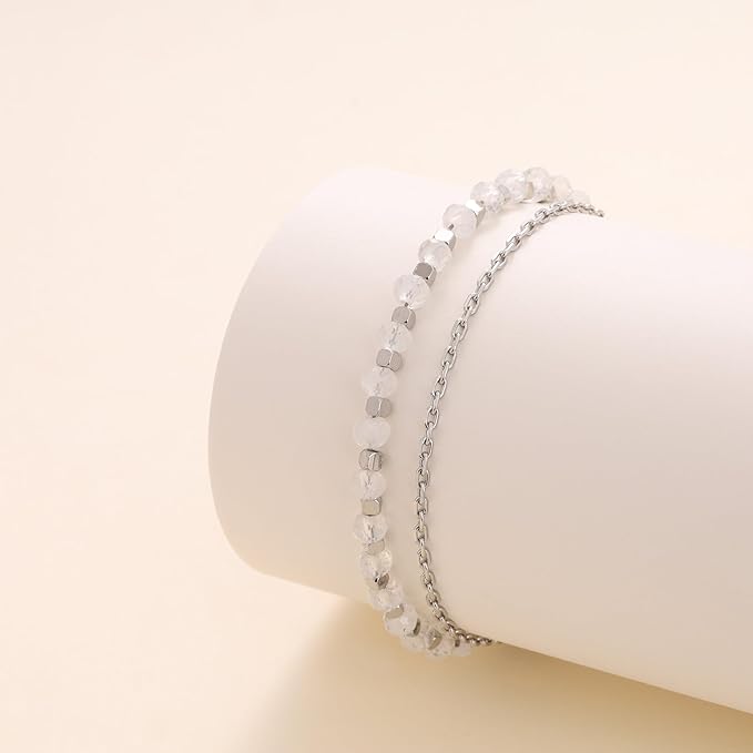 チェーンの仕様: レディースブレスレットはパワーストーンビーズと、太さ1.5mm、長さ16cmのステンレスリンクチェーンを組み合わせたダブルレイヤーデザインです。この構造がブレスレットに深みと豊かな表情を与えます