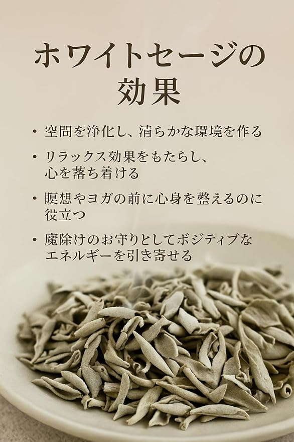 最高品質: カリフォルニア産のオーガニックホワイトセージ(サルビア・アピアナ)を使用し、深く豊かな香りが特徴です
