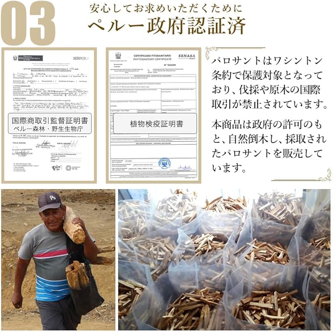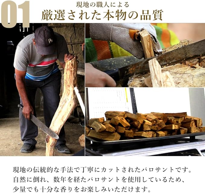 パロサント(Palo Santo)とはスペイン語で「聖なる木」を表す南米産の香木です。濃厚な香りで空間を浄化する力があり、かつてはラテンアメリカの先住民たちが魔除けとして使用し、 昨今ではニューヨーク周辺のファッション業界やヨガインストラクターなどから注目を集め、日本でも幸福を呼び込む香木として話題のアイテムです