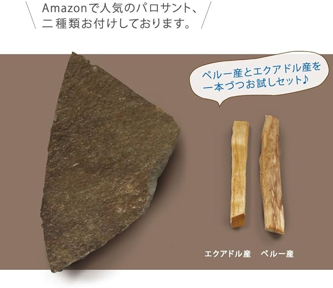 パロサントサイズ:約10cm 1~2cm、人気ランキング1位と2位のペルー産/エクアドル産 各1本ずつ