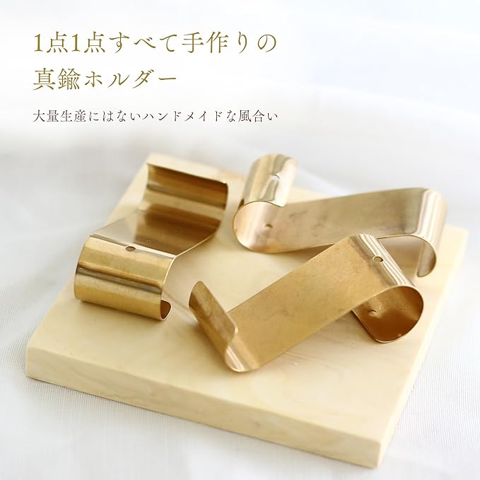 【一つ一つ手作りの真鍮ホルダー】渦を巻いたようなスワール型の真鍮は一点一点職人の手作り。大量生産にはないハンドメイドならではの風合いを楽しめます。