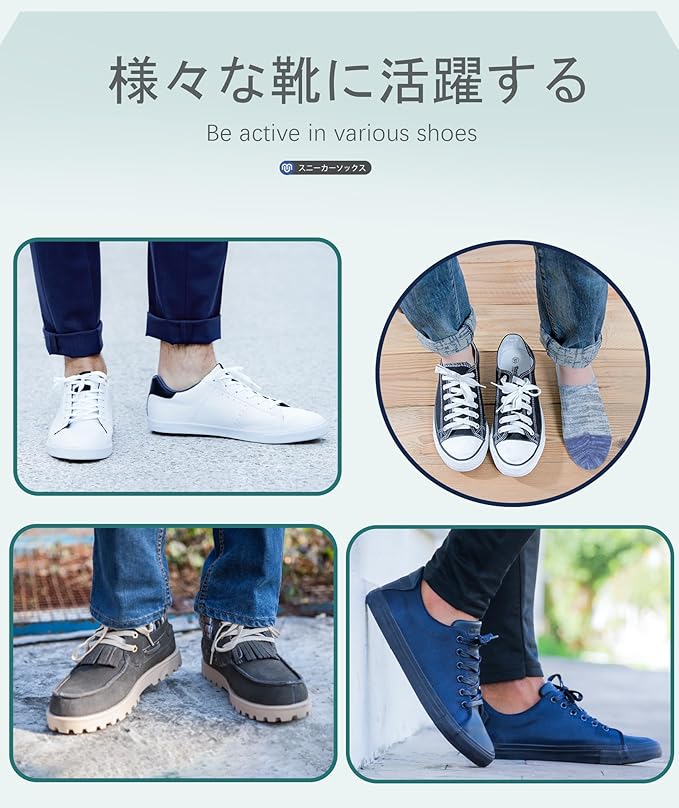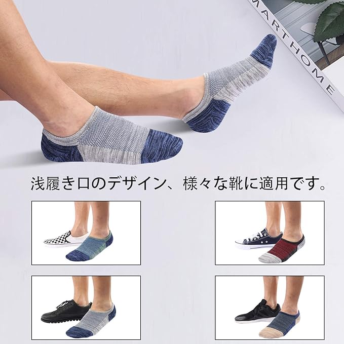 【履き心地良い】肌にやさしい天然長日照天然綿とポリエステル素材で肌にやさしく、通気メッシュ編みで足の清潔を保ち、臭いを防ぎます。履き口部分が伸縮性が優れてる弾性リブデザインを採用して、締め付けがきつ過ぎず緩すぎず、快適なフィート感をできるようになってます。