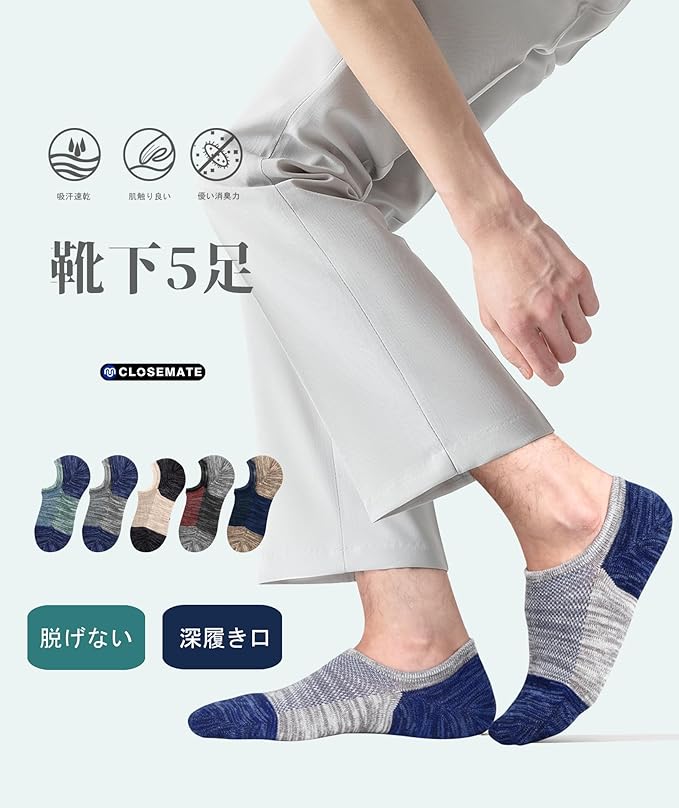 【吸汗通気防臭】高質な素材を採用したこのフットカバーは、防臭吸汗加工をされて、有効的に匂いを抑えられます。足に蒸れを防いで、除臭に優れてます。