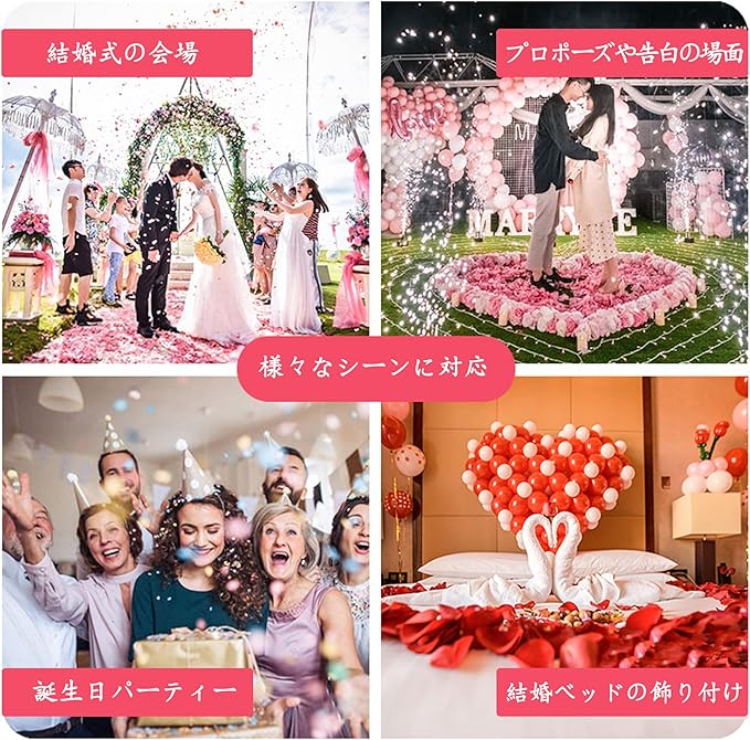 【注意事項】光やコンピュータの環境により、実際の商品と写真の微妙な色の違いが生じる場合があります。花びらの製造過程で、布の表面に付着した糸や粉が少しずつ取れることがあります。花びらを受け取った後は、そっと振って糸や粉を取り除いてください。これらの糸や粉はポリエステル繊維で作られており、人体には無害です。