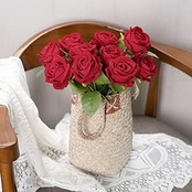 ✿パッケージ:バラ:10本。花瓶なし。花のサイズ:総長さ約51cm、1本の質量14.3g:造花は梱包の際に、茎や葉を曲げてお入れる場合がございますが、ご了承ください。届きましたら、早めに箱から出して、形を備えてから飾ってください。