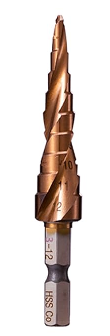 TSUCIA M35 ステップドリルHSS-Co钢 ビット 六角轴 スパイラル ステンレス用 チタンコーティング 螺旋 ドリル 3-12mm/10段