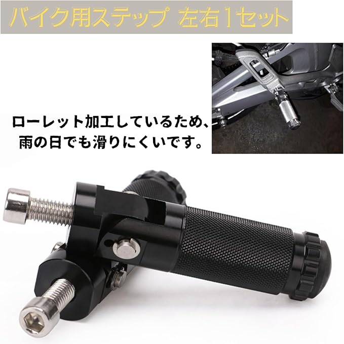 【適合車種】M8ボルトで固定できる汎用ステップです。ホンダ、カワサキ、ヤマハ、スズキなど、さまざまな車種に対応します。