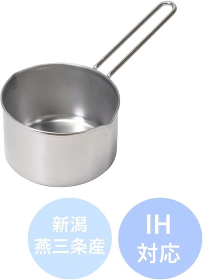 素材・材質:本体/ステンレス鋼(クロム16%)(底の厚さ0.8mm)、取っ手/ステンレス鋼(クロム16%)、寸法:13cm、満水容量:1.0L