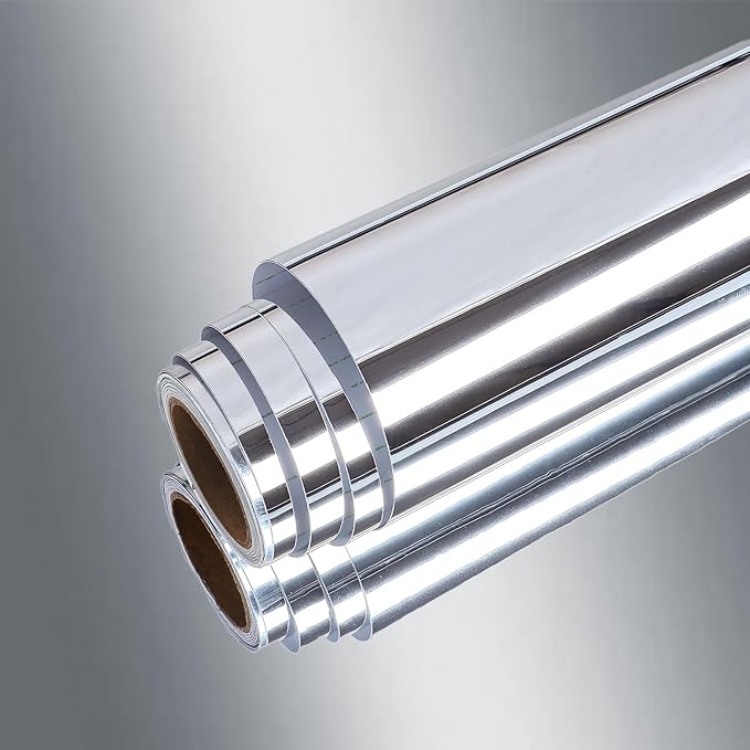 ✪【鏡面ミラーシート・人目をひきます】: 光沢のあるシルバー メタル調ミラーカラー紙は人の視線を奪うこと間違いなしです。壁紙シートの台紙裏面は目盛り線があり、目盛り線に沿ってカットできるので手作りに便利です。車、窓、商品、壁、看板、ウィンドウグラフィック、スクラップブック、 雑貨 や 小物 などに貼り付け、装飾的な付加価値の役割を果たします。