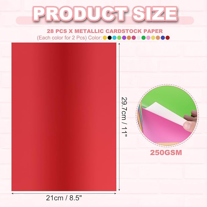 仕様:カラー: 14色; サイズ: A4/21x29.7cm/8.3 x 11.7"(幅x長さ); 素材: 紙; 梱包リスト: メタリックカードストック紙28枚。