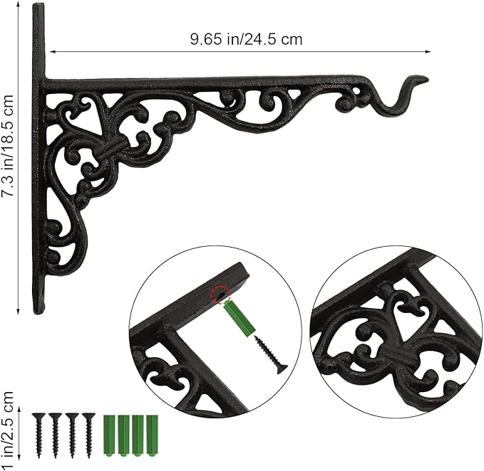 【多様な設置場】アイアンブラケットの色はブラックで、お洒落な色は多くの所に適しています。庭用ブラケットはお宅のベランダー、廊下、窓、壁、ドア、ガーデン、或いは、カフェ、レストラン、ガーデン、本屋などのお店、どちらでも最適で、雰囲気アップし人々から好かれます。