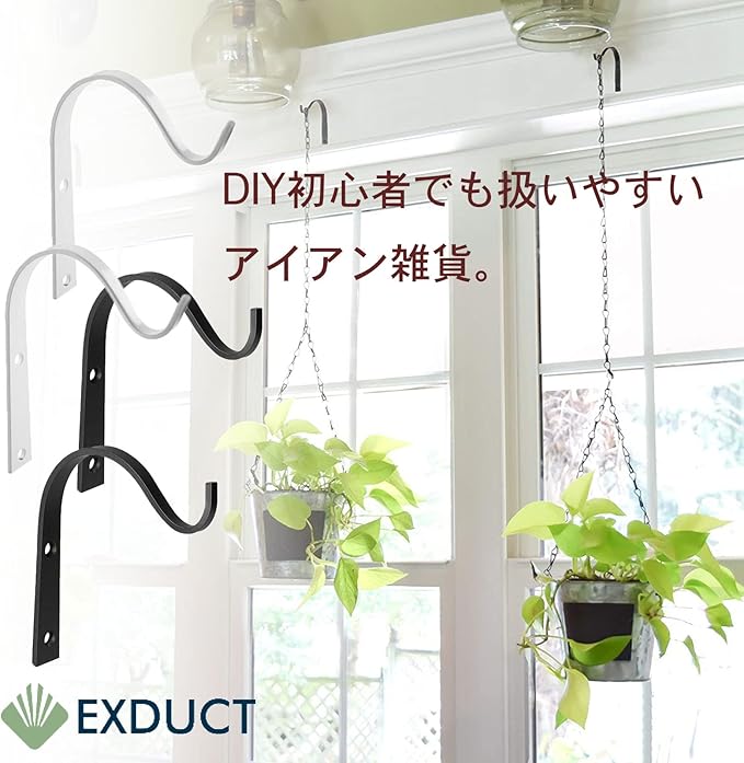 ブラケットフックに鉢や花瓶を引っ掛けることで華やかなインテリアとなります。ネジで簡単に壁に取り付けられます。