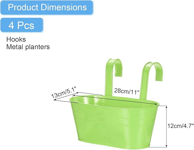 カラー:ライト緑、材質:鉄、サイズ:28 x 13 x 12 cm(L x W x H)、パッケージ内容:4個 x 吊り下げ式植木鉢