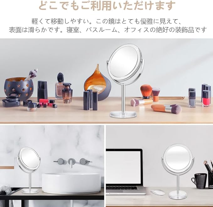 【360度回転】等倍鏡と10倍拡大鏡、両面があり、360度回転される、使いやすいように最適な角度に調整することができますミラー。