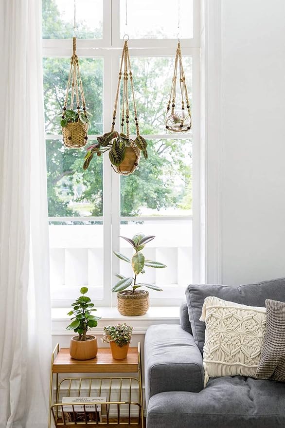 【天然素材】麻縄で編み込んだマクラメの植物ハンギングです。ユニークなデザインで、お部屋やリビングルームに完璧な彩りを加えます。お部屋にプラントハンギングを吊り下げたら、雰囲気が一気に変わります。植物を飾らなくてもカゴや鉢などの雑貨を吊り下げて楽しむことができます。