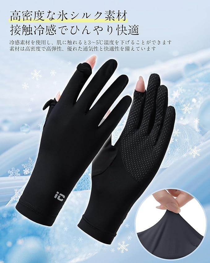【接触冷感・快適着用】❄ 接触冷感素材を使用し、春夏秋に適した設計です。ソフトで通気性に優れ、しわになりにくく、繰り返し洗濯が可能です 。水や汗に濡れると冷却効果が発揮され、涼しい感触が得られます 。優れた吸湿性と吸汗性により、蒸れにくい肌に優しい手袋です