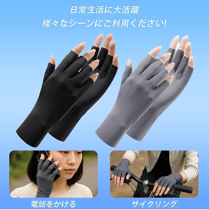 【ハーフフィンガー日焼け防止手袋】このレディース手袋は、指先を柔軟かつ自由に保つために、ユニークな指なしデザインを採用しています。指を開かない設計により、手の自由度が大幅に向上します。運転、オフィスワーク、ガーデニングなど、日焼け防止と簡単な操作の両方を考慮し、日常の活動をより効率的かつ快適にします。