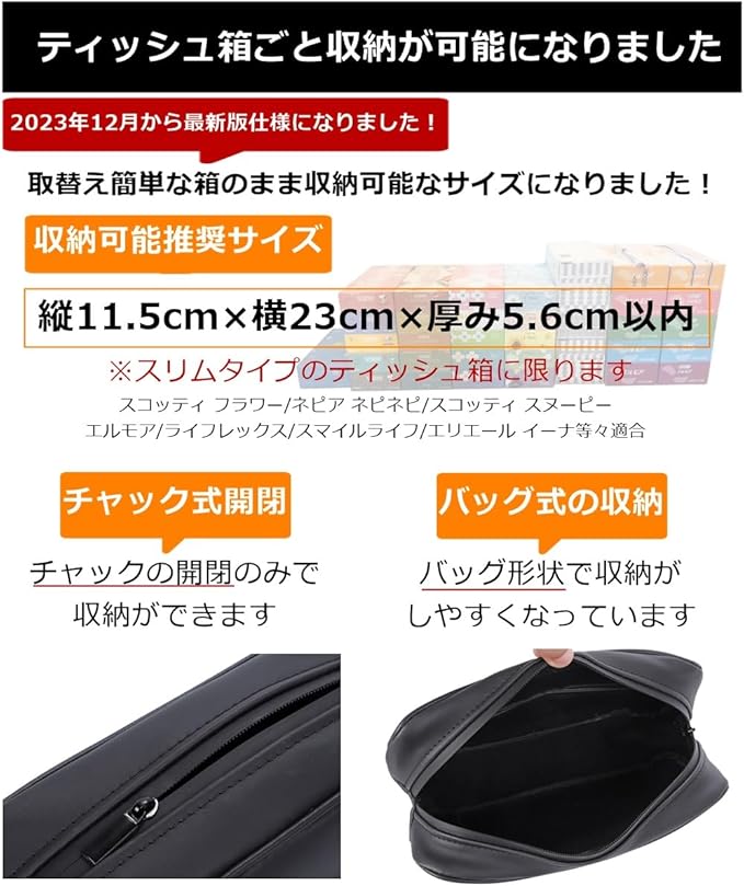 【ティッシュ箱のまま収納可能】コンパクト設計ながらティッシュ箱ごと収納できる設計となっております ※スリムサイズのティッシュ箱適合です