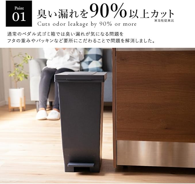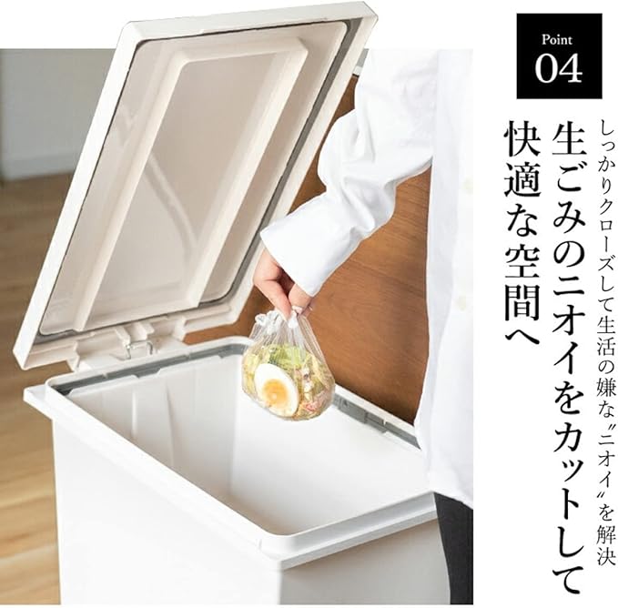 材質:フタ・本体・袋止め・ペダル/ポリプロピレン、ペダルロッド/スチール、パッキン/ポリエチレン