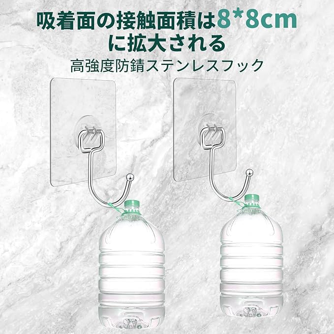 フックのサイズ:8cm 8cm パッケージ内容:6枚入りセット 耐荷重は25KG 、180 回転するフック