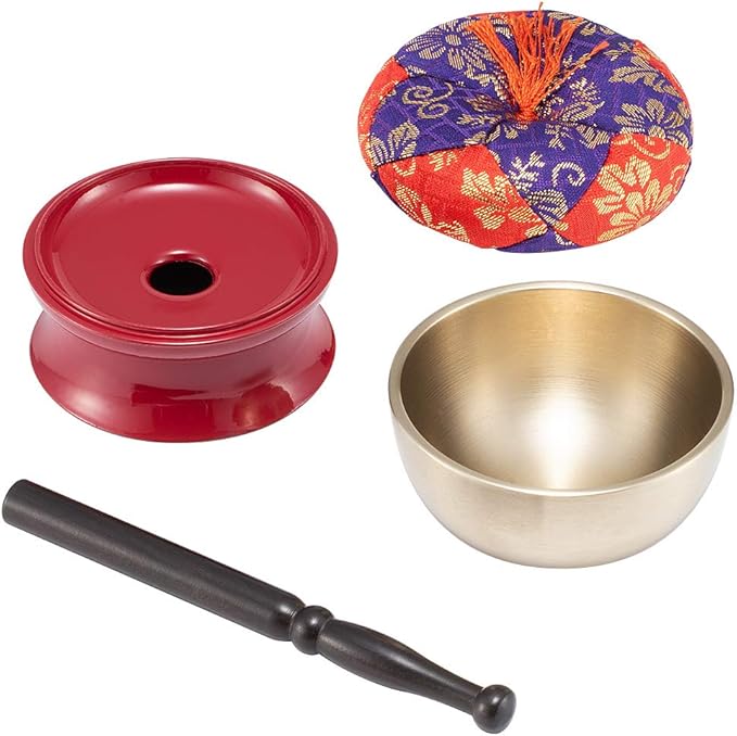 リン寸法:口径 9.2cm/材質:青銅合金製/生産地(リン):富山県高岡製/備考:ふとん・リン台(樹脂製朱塗り)・黒檀リン棒付き