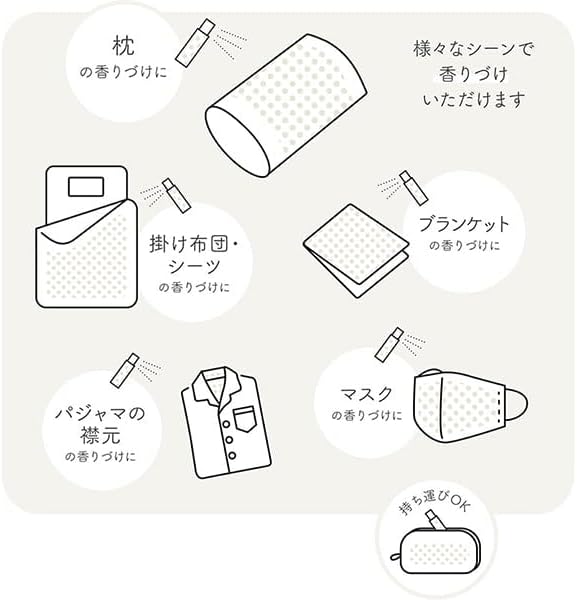 おやすみの前に枕にスプレーすれば心地よい香りが枕元を包み込み、リラックスを促して良質な睡眠をサポートします。