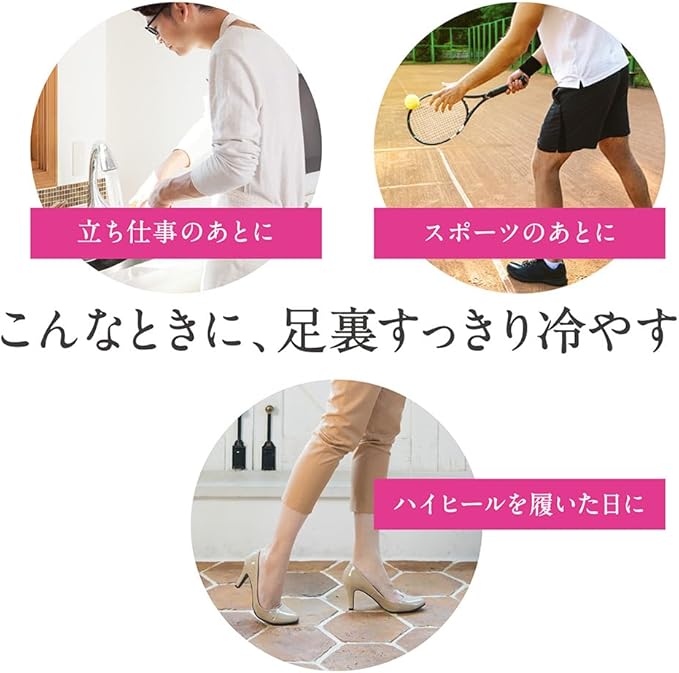 1. 使用前に肌が乾燥して清潔であることを確認してください。 2. 透明フィルムをはがし、ソールに貼り付けます。 3. ソールに貼る際はジェルパッドを伸ばして刺激を与えます。 4. 最良の冷却効果を得るには、使用前に冷蔵してください。 冷凍庫に保管してください。
